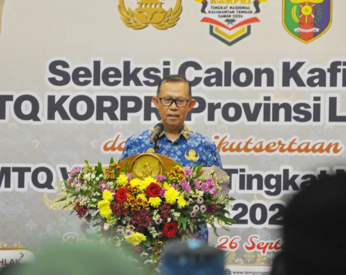 “MTQ ini merupakan salah satu cara kita, menggairahkan anggota Korpri untuk mempelajari dan mencintai Al-Qur’an serta ilmu agama. Dengan mempelajari dan mencintai Al-Qur’an serta ilmu agama, maka sempurnalah hidupnya dan perannya sebagai ASN. Itu juga yang akan memantapkan niat ASN bekerja sebagai suatu ibadah,” kata Sekdaprov saat membuka Seleksi Calon Kafilah MTQ Provinsi Lampung.
