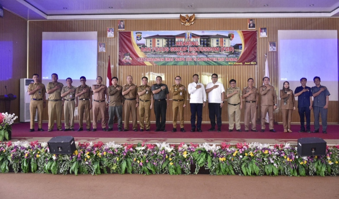 Hal tersebut disampaikan Bupati Way Kanan H. Raden Adipati Surya, S.H.,M.M saat memberi sambutannya dalam acara Hearing dan Focus Group Discussion (FGD) Tentang Pertambangan Emas Tanpa Izin di Kabupaten Way Kanan, bertempat di Gedung Pusiban Selasa (20/06/2023)