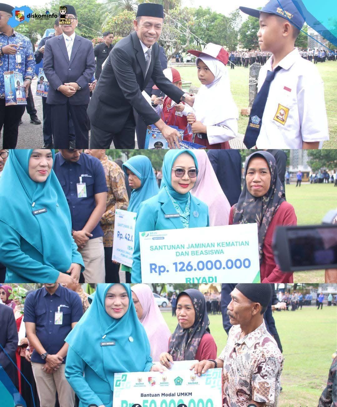 Sementara melalui Baznas Lampung Utara, diberikan bantuan modal usaha sebesar Rp50 juta untuk 50 pelaku UMKM, serta bantuan Lumbung Pangan senilai Rp429.695.000 untuk 129 petani se-Kabupaten Lampung Utara.