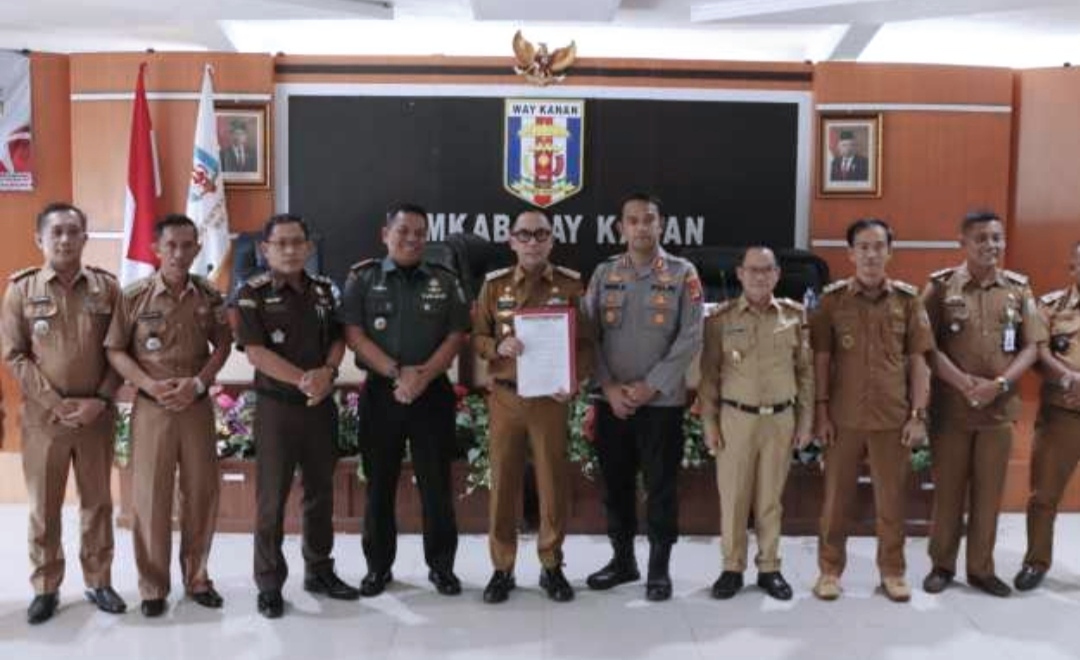 Bupati Way Kanan H. Raden Adipati Surya, S.H.,M.M menghadiri Acara Penandatanganan Kesepakatan Bersama Focus Group Discussion (FGD) “Sinergitas, Solidaritas dalam Menjaga Kamtibmas di Kabupaten Way Kanan” Terkait Penyelenggaraan Hiburan di Kabupaten Way Kanan, Selasa (20/06/2023) bertempat di Ruang Rapat Buay Pemuka Pengiran Tuha.
