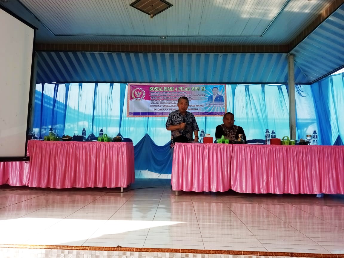 “Pancasila sudah menjadi keyakinan bangsa Indonesia sebagai dasar negara dan memayungi UUD 1945, NKRI dan Bhineka Tunggal Ika sebagai semboyan negara. Maka, Empat Pilar Kebangsaan akan menjadi nilai dan kekuatan bangsa yang tak akan terpisahkan oleh gelombang zaman,” ucap anggota DPR/MPR RI dari Fraksi PAN daerah pemilihan Lampung II yang juga adalah putra daerah Kabupaten Lampung Utara tersebut.