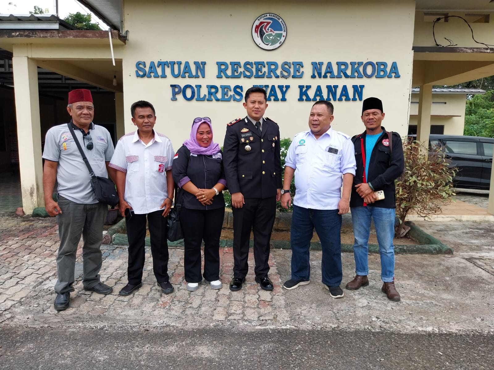 Kedatangan Sekretaris GRANAT Way Kanan didampingi oleh Rahmat Iparai Sekretaris, Maria Sari Wakil Sekretaris SMSI, Darlin dan firman selaku Sekretaris BARA JP, dan juga M.Nasir Wakil Ketua FPII di terima langsung Kasat Narkoba AKP Sigit Brazili, ST.