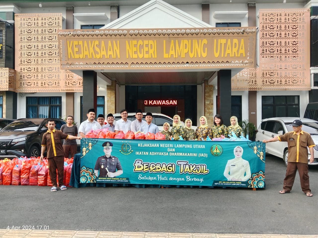 “Kejaksaan Negeri Lampung Utara bersama Ikatan Adhyaksa Dharmakarini mengadakan agenda tahunan rutin yaitu berbagi takjil kepada warga dan pengendara yang kebetulan lewat depan kantor kita,” kata Kepala Kejaksaan Negeri Lampura, Mohamad Farid Rumdana, didampingi Kasi Intel, Guntoro Jajang Saptodie dan Kasubagbin, Adhi Prasetyo Handoyo.