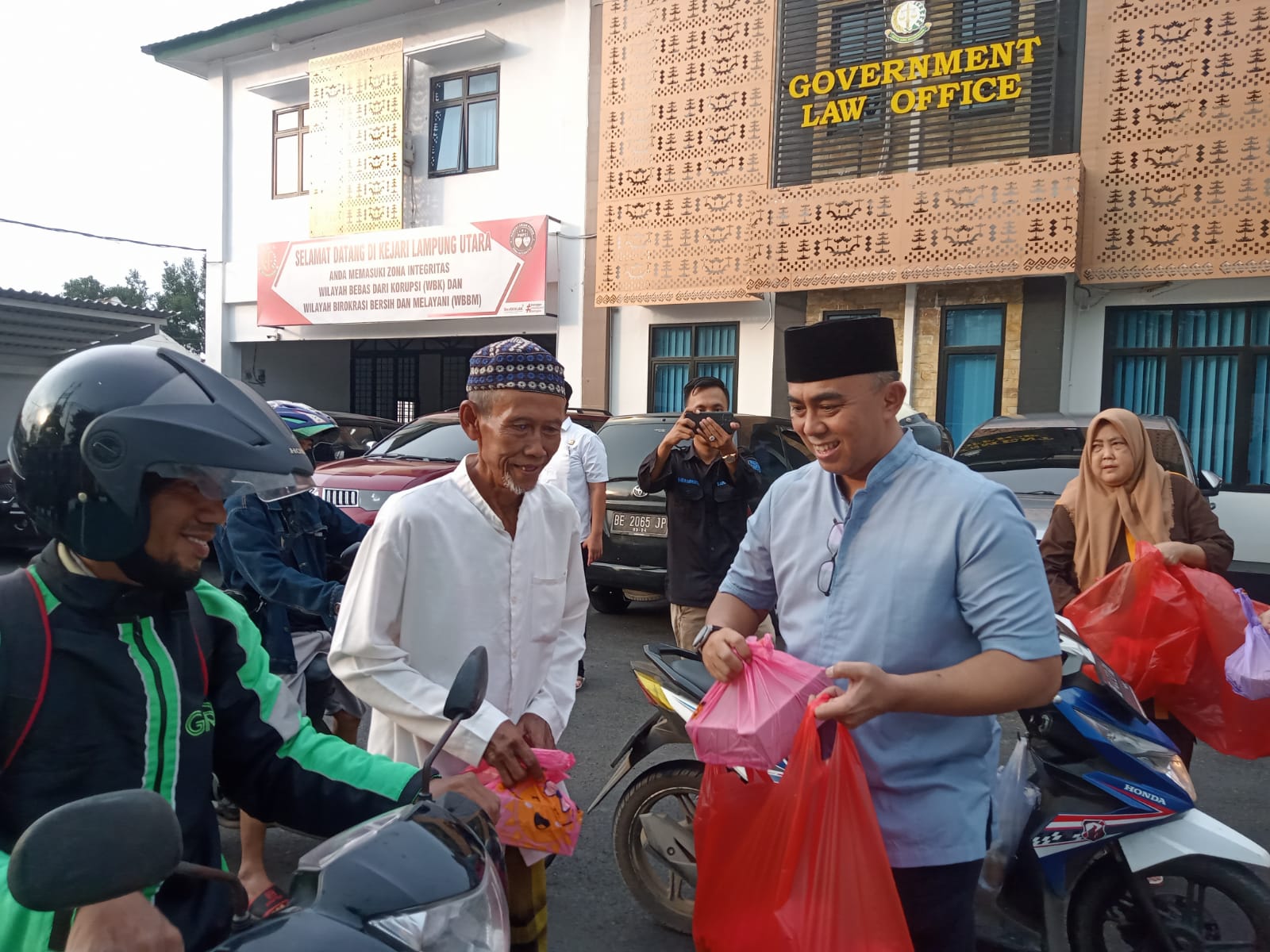 Kegiatan itu diagendakan Kepala Kejaksaan Negeri Lampung Utara dan disambut antusias warga yang melintas. Tak kurang dari setengah jam, sebanyak 500 paket berbuka puasa yang disiapkan habis tak bersisa.