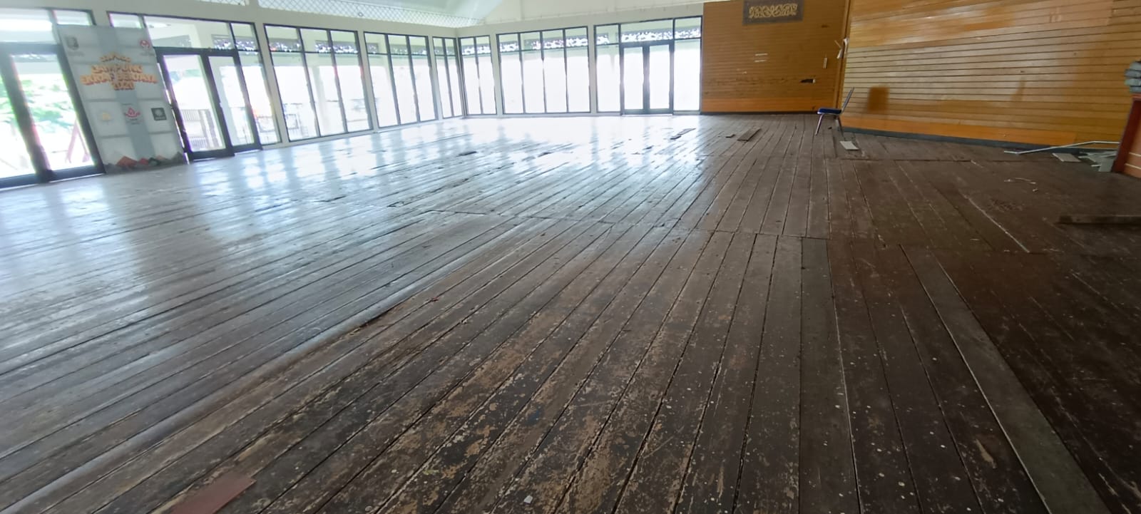 Namun temuan dilokasi, terlihat bagian lantai kramik masih mengalami kerusakan dan pecah-pecah, lalu pada lantai kayu juga nampak tidak ada perbaikan, karena masih terlihat lantai yang lapuk dan kusam.