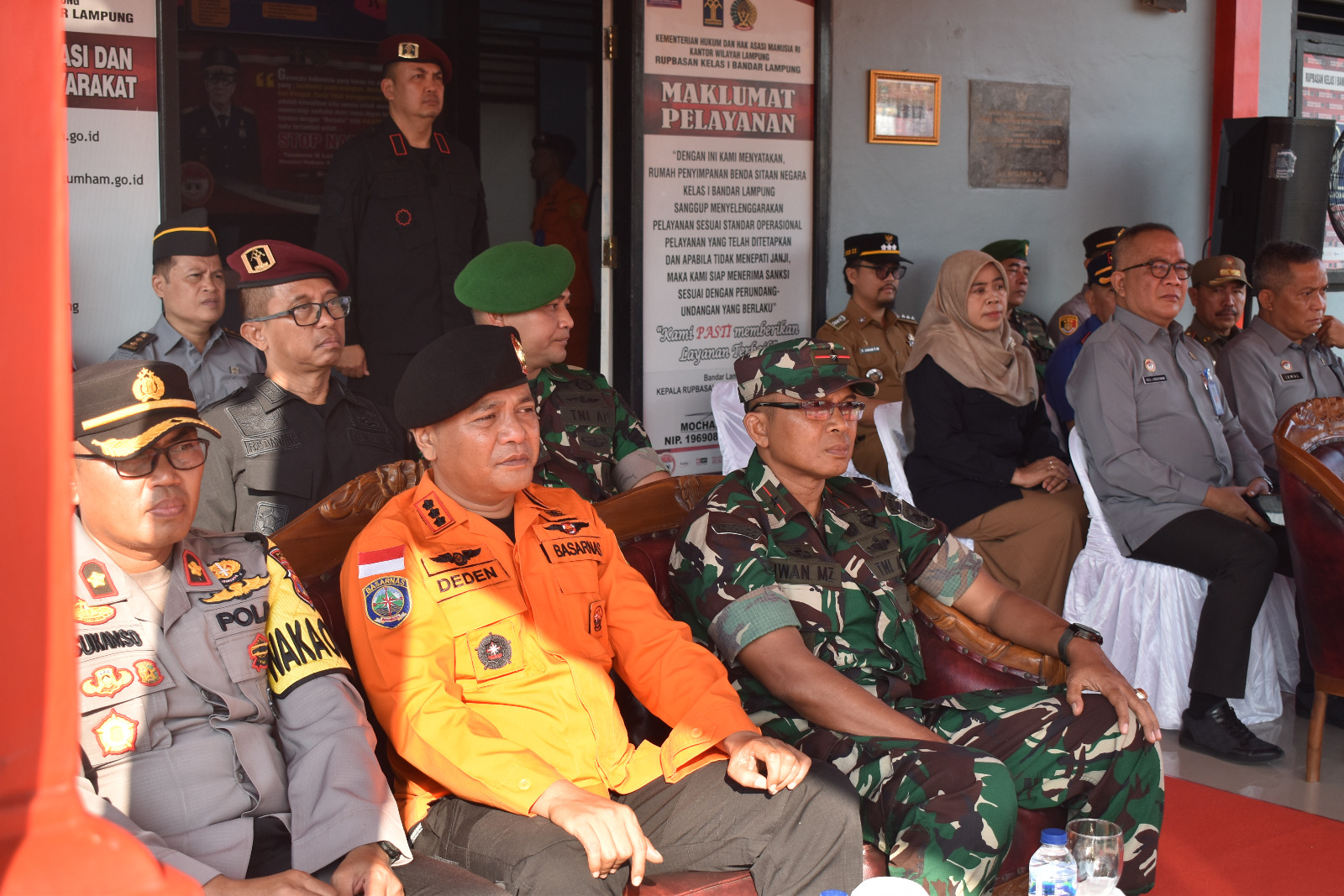 Turut hadir merngikuti kegiatan tersebut Dandim 0421/LS Letkol Inf Fajar Akhirudin S.I.P.,M.Si, Wakapolres Lamsel Kompol Sukamso, S.H, Kabasarnas Lampung, Kadis Damkar Provinsi Lampung, Kabid Brantas BNN Lampung, Perwakilan KPU Provinsi Lampung, Perwakilan Densus 88 AT Lampung, Perwakilan Kantor Imigrasi Provinsi Lampung, dan Pertwakilan Lapas Kelas I Bandar Lampung.