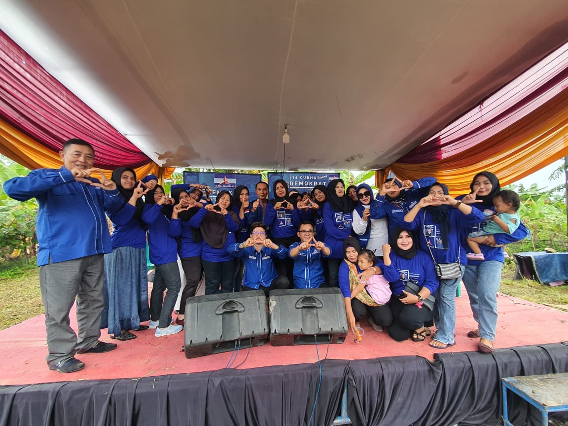 Kendati cuaca dalam keadaan hujan gerimis, lagu “Terbang Bersamaku” yang menghentak membuat para ibu-ibu Srikandi Demokrat maju ke depan panggung dan berjoget bersama Andika.