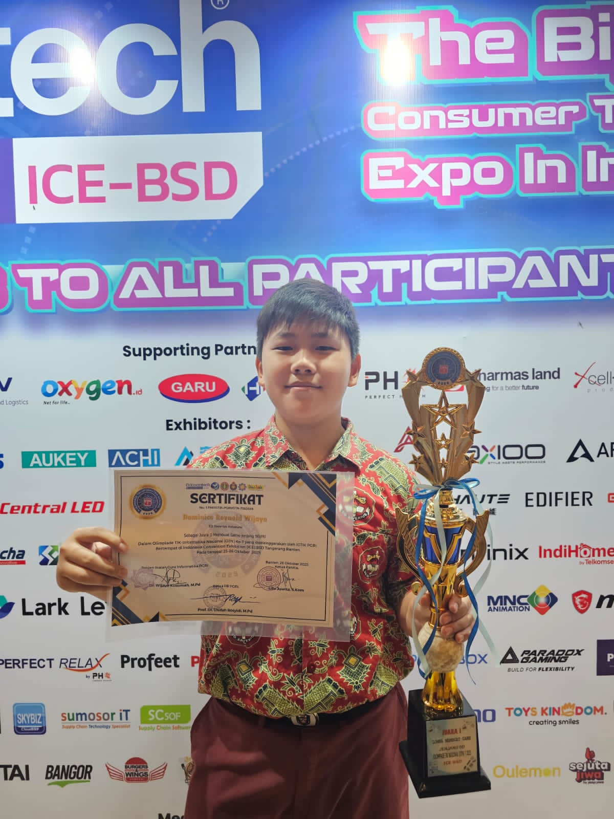 Banten (KandiSatu lagi prestasi membanggakan datang dari dunia pendidikan Lampung Utara. Dominico Reynold Wijaya, siswa kelas VI Sekolah Dasar (SD) Xaverius Kotabumi, berhasil mengharumkan nama daerah dengan meraih Juara 1 kategori Membuat Game jenjang SD/MI dalam Olimpiade TIK-Informatika Nasional (OTN) Ke-7, yang diselenggarakan oleh Ikatan Guru TIK dan Informatika PGRI (IGTIK PGRI) di ICE BSD, Tangerang, Banten, pada 23–26 Oktober 2025.