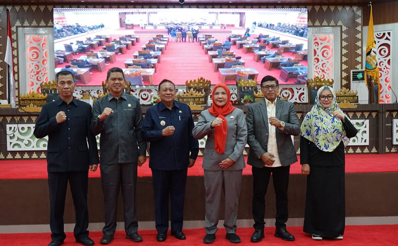 Rapat Paripurna dipimpin Ketua DPRD Kota Bandar Lampung H. Wiyadi, SP.MM dan dihadiri oleh Wali Kota Bandar Lampung Hj. Eva Dwiana, S.E, wakil wali kota Dedi Amrullah dan para anggota DPRD Kota.