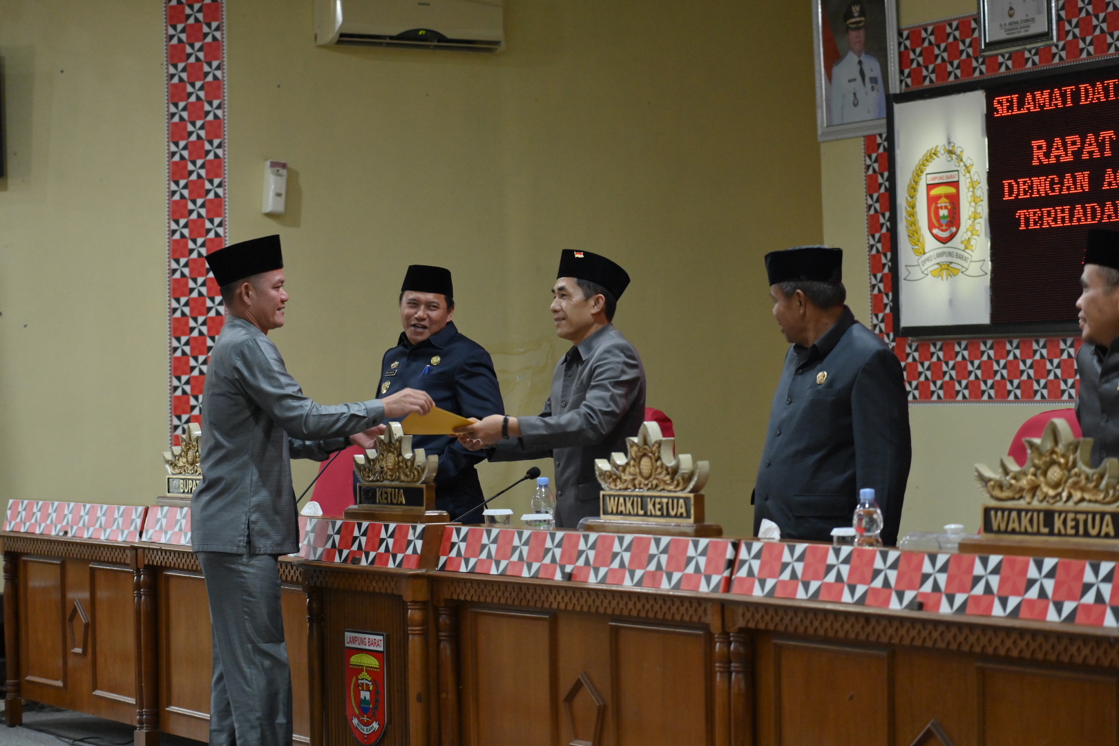 LAMPUNG BARAT (KANDIDAT) – DPRD Kabupaten Lampung Barat menggelar rapat paripurna dalam rangka Pandangan Umum fraksi atas Laporan Pertanggung jawaban Pj. Bupati terhadap LKPJ tahun anggaran 2023 pada Selasa, (14/05/2024) di ruang Maghgasana DPRD Kabupaten Lampung Barat.