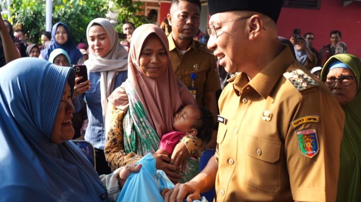 Guna mengentaskan kemiskinan, dan meningkatkan kesejahteraan masyarakat, Gubernur Lampung Rahmat Mirzani Djausal memberikan bantuan sembako, kepada keluarga miskin, di Kelurahan Kota Bumi Tengah, Kecamatan Kota Bumi, Kabupaten Lampung Utara, Senin (10/3/2025).