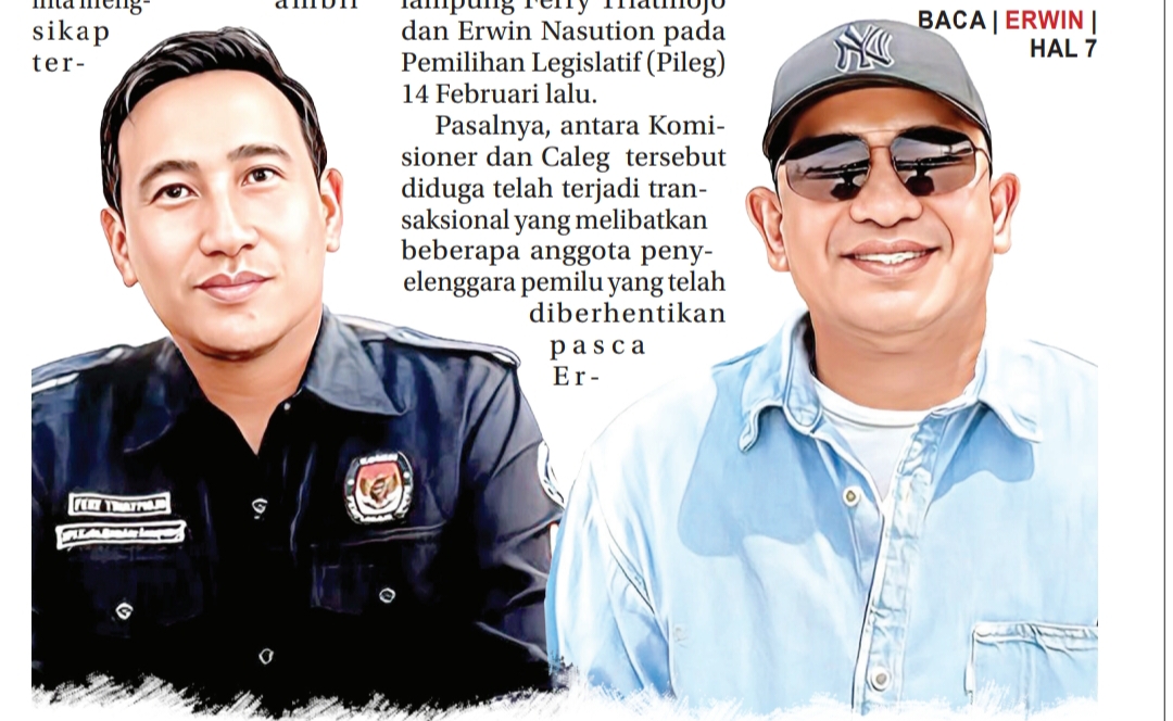 Pasalnya, antara Komisioner dan Caleg tersebut diduga telah terjadi transaksional yang melibatkan beberapa anggota penyelenggara pemilu yang telah diberhentikan pasca Erwin Nasution melaporkan ke Badan Pengawas Pemilu (Bawaslu) Lampung .