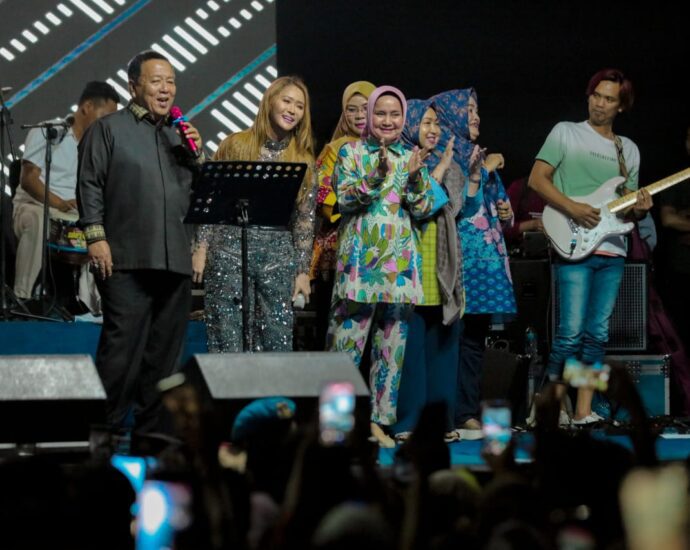 Ribuan masyarakat tampak sangat antusias memadati Lapangan Kasrab, Gisting Atas. Pada acara ini, Gubernur Arinal ikut menyumbangkan lagu berduet bersama Inul Daratista.(Red)