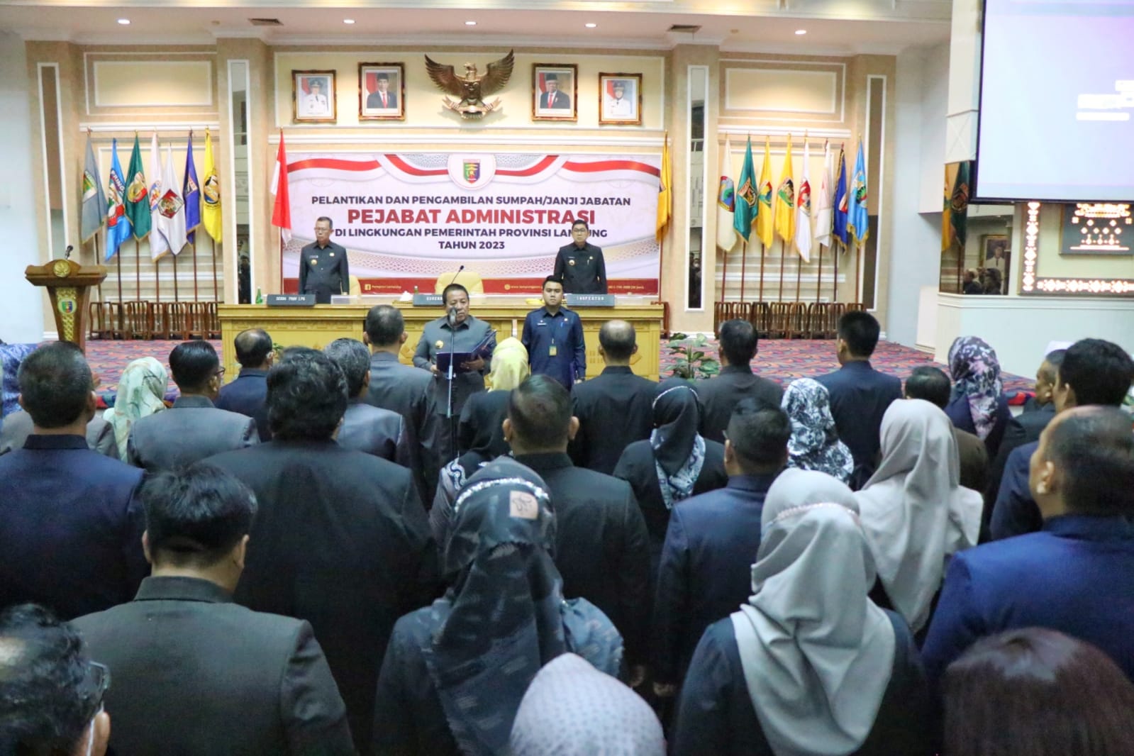 Pelantikan tersebut berdasarkan Surat Keputusan Gubernur Lampung Nomor : 821.22.23/11/VI.04/2023 Tentang Pengangkatan, Pemindahan dan Pemberhentian Pegawai Negeri Sipil Dalam dan Dari Jabatan Administrator dan Jabatan Pengawas di Lingkungan Pemerintah Provinsi Lampung, dengan rincian 51 orang Pejabat Administrator dan 54 orang Pejabat Pengawas.