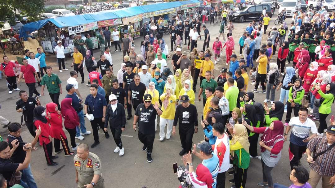 Gubernur Lampung didampingi Ketua Umum Perwosi Provinsi Lampung Riana Sari, Pj. Bupati Lampung Utara Aswarodi, bersama ribuan masyarakat yang hadir memadati halaman Stadion Sukung melakukan Senam Lampung Berjaya.