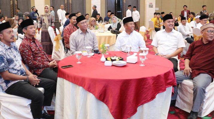 Gubernur Lampung Rahmat Mirzani Djausal dan Wakil Gubernur Lampung Jihan Nurlela menghadiri Silaturahmi dan Buka Puasa Bersama Forum Keluarga Alumni Ikatan Mahasiswa Muhammadiyah (Fokal IMM) Provinsi Lampung di Ballroom Hotel Emersia Bandarlampung, Selasa (25/3/2025).