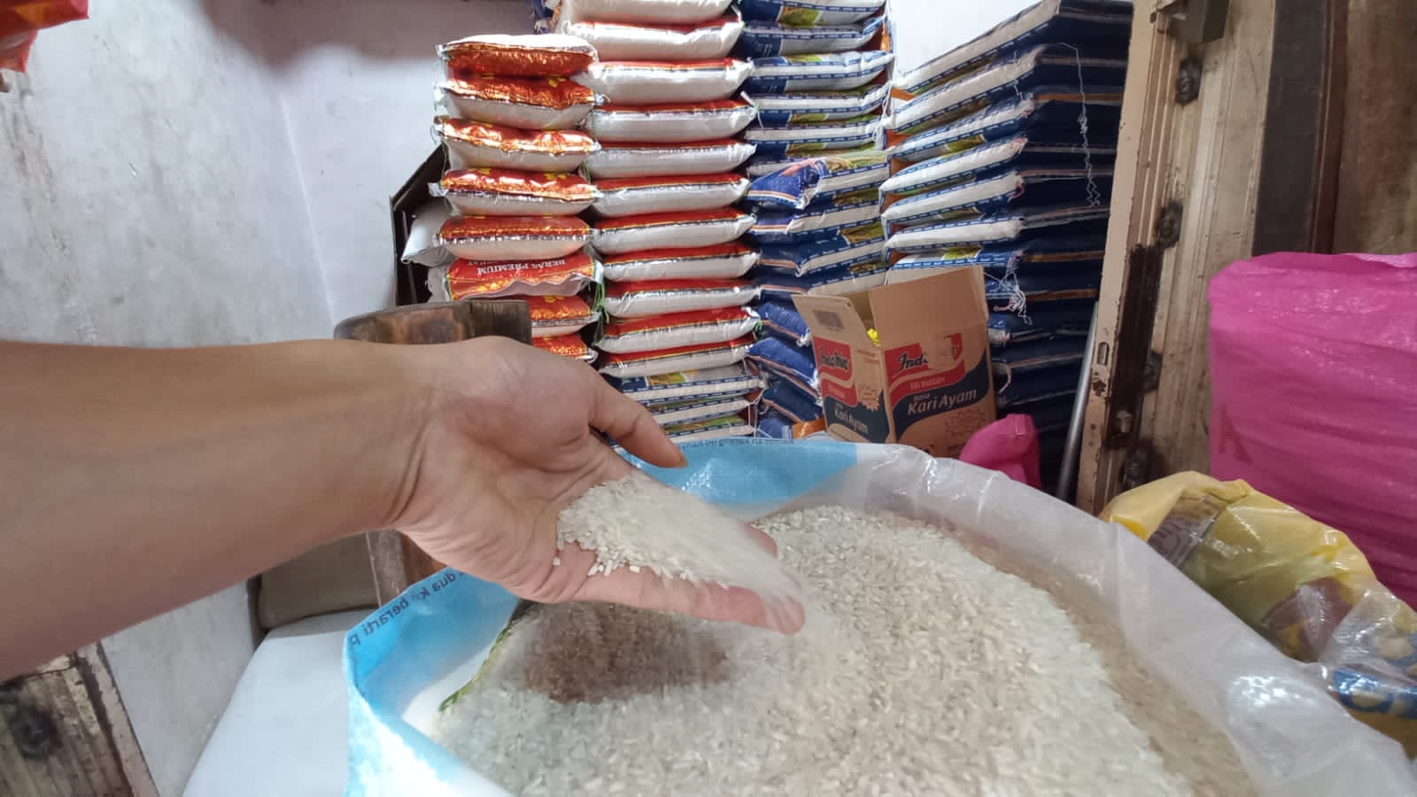 “Saya cuma nyetok 1 ton beras aja. Dari biasanya harga beras Rp105 ribu yang 10 kilo sekarang menjadi Rp135 ribu, itupun dari Bulog beras yang berkualitasnya,” ujarnya menjelaskan.