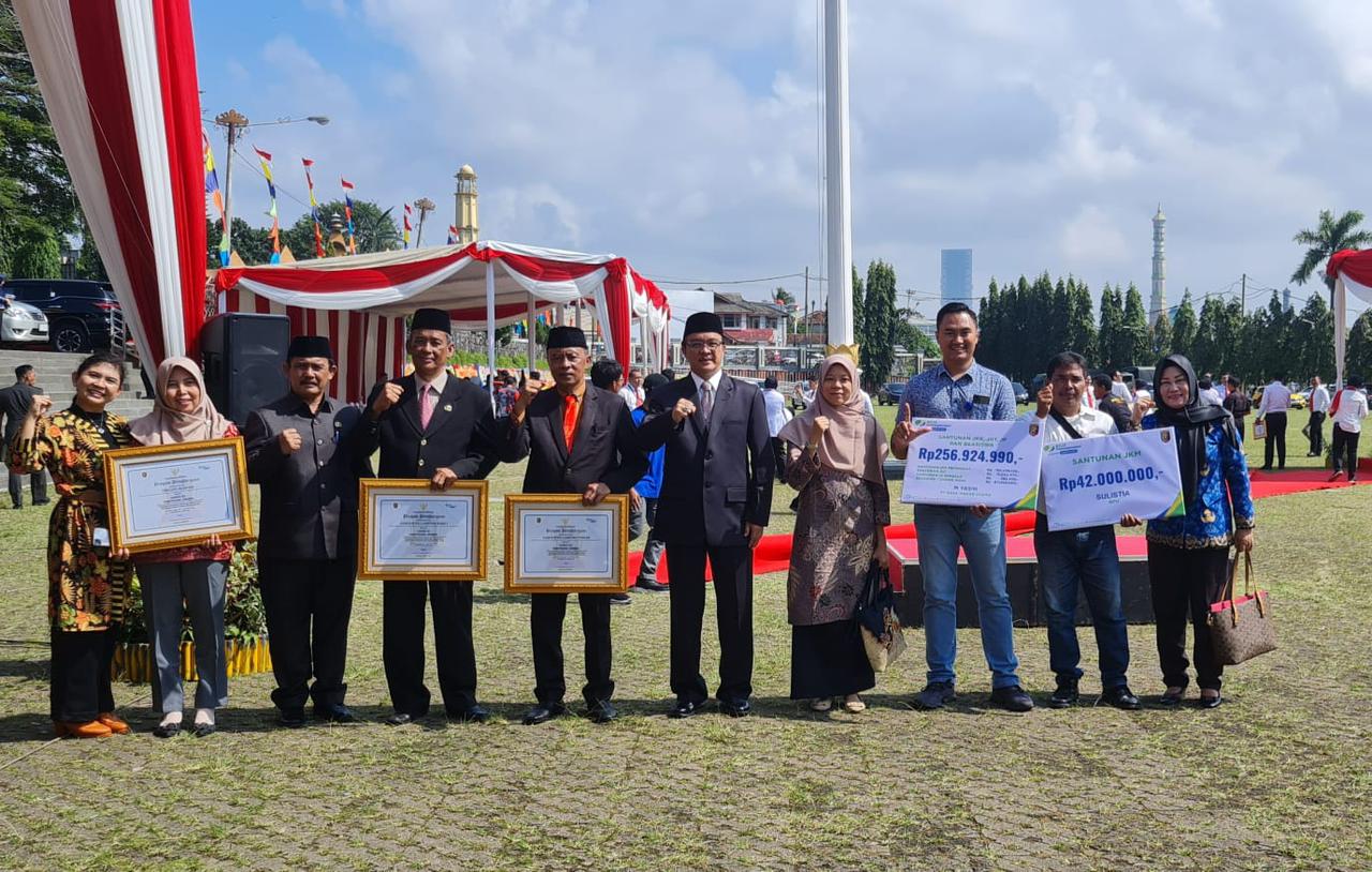 Pemberian penghargaan Paritrana Award serta santunan JHT dan KPJ tersebut dilakukan secara simbolis pada upacara peringatan HUT Provinsi Lampung Ke-59 di Lapangan Korpri, Jum’at (17/3/23).
