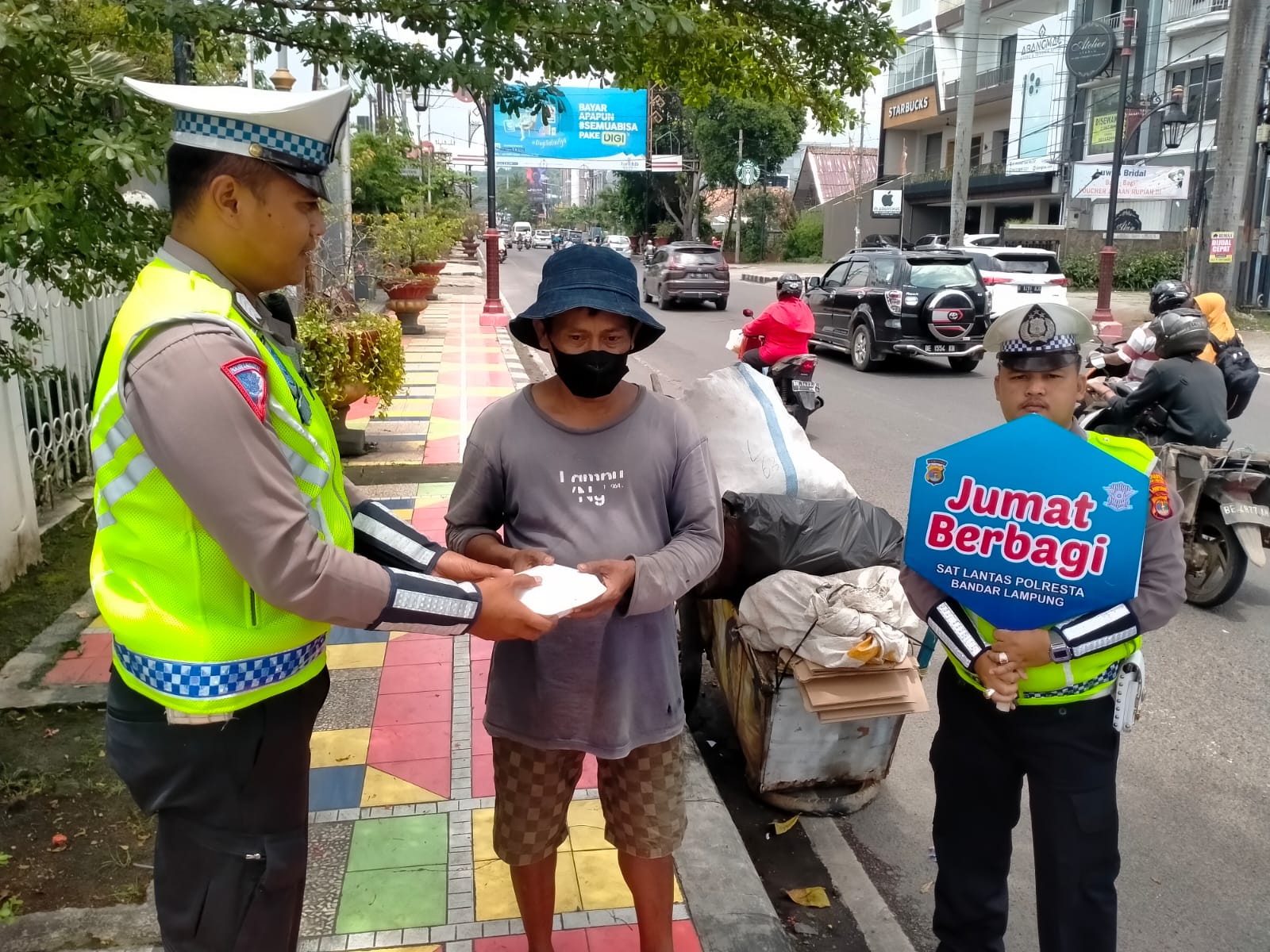 Kasat Lantas Polresta Bandar Lampung AKP M. Rohmawan, SH, MH mewakili Kapolresta Bandar Lampung Kombes Pol Ino Harianto, S.I.K, M.M., mengatakan ini merupakan salah satu wujud kepedulian dan bentuk rasa syukur dengan tujuan dapat meringankan beban terhadap sesama.