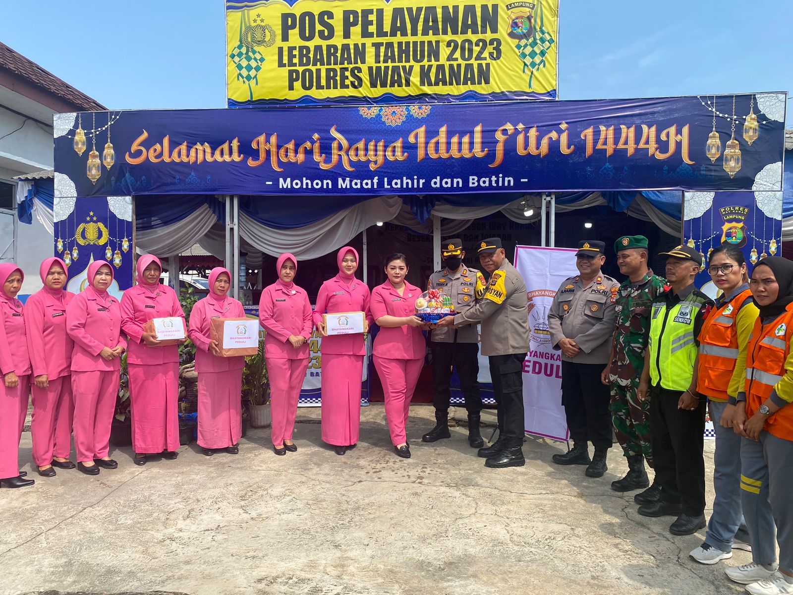 Way Kanan ( KANDIDAT) – Kapolres Way Kanan AKBP Teddy Rachesna bersama Ketua Bhayangkari Cabang Way Kanan Ny. Penty Teddy Rachesna didampingi para pejabat utama dan pengurus Bhayangkari, kunjungi ke Pos Pelayanan dan Pos Pengamanan di Wilayah Hukum Polres Way Kanan. Kamis (20/04/2023).