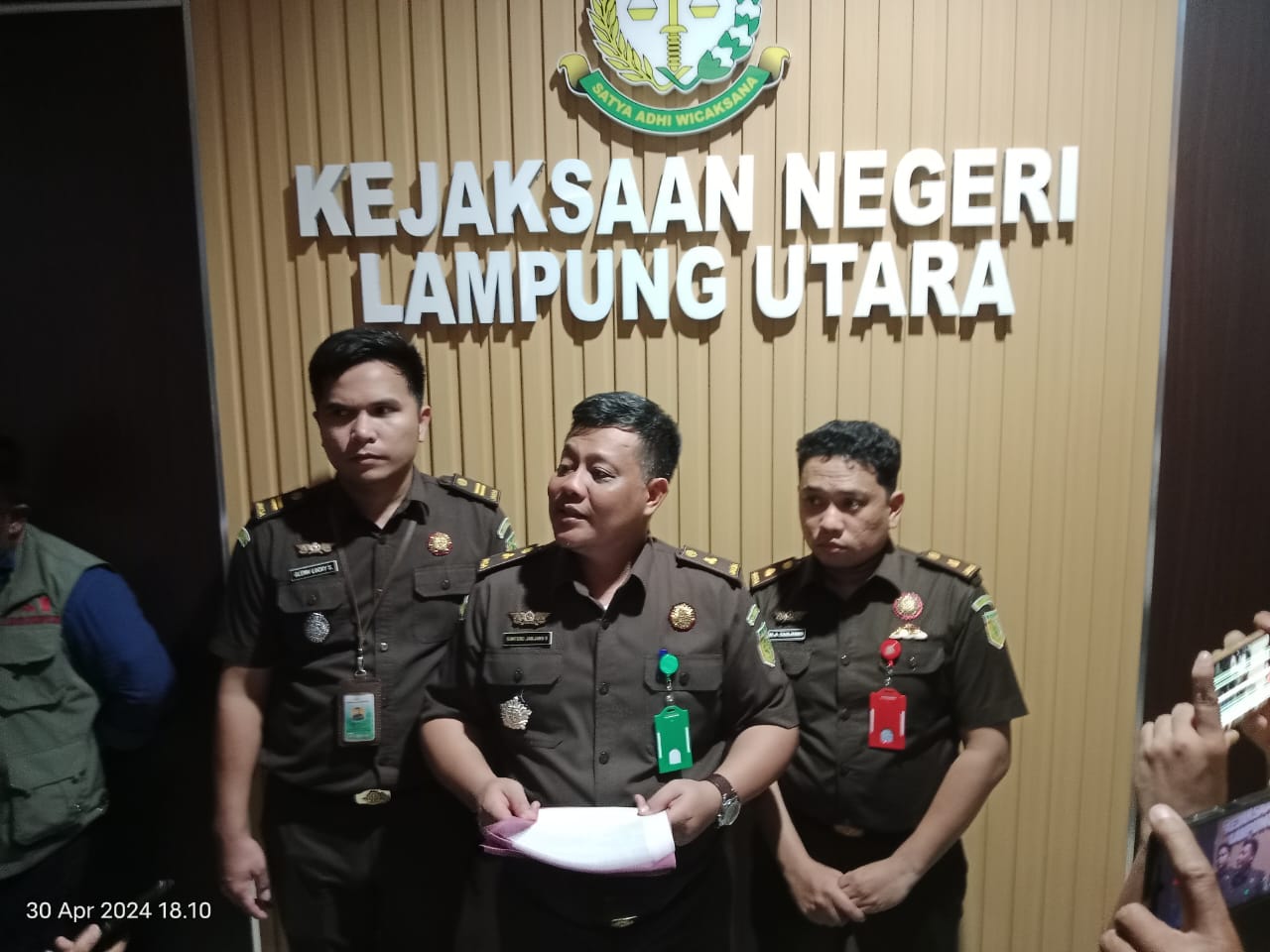 Kepala Kejaksaan Negeri Lampung Utara M. Farid Rumdana melalui Kasi Intelijen, Guntoro Janjang Saptodie saat menggelar konferensi pers menjelaskan bahwasanya Jaksa Penyidik melalui serangkaian pemeriksaan dalam kurun waktu hingga 9 bulan akhirnya menyimpulkan perkara korupsi kegiatan Jasa Konsultansi Kontruksi pada Inspektorat Lampung Utara ada kerugian Negara.