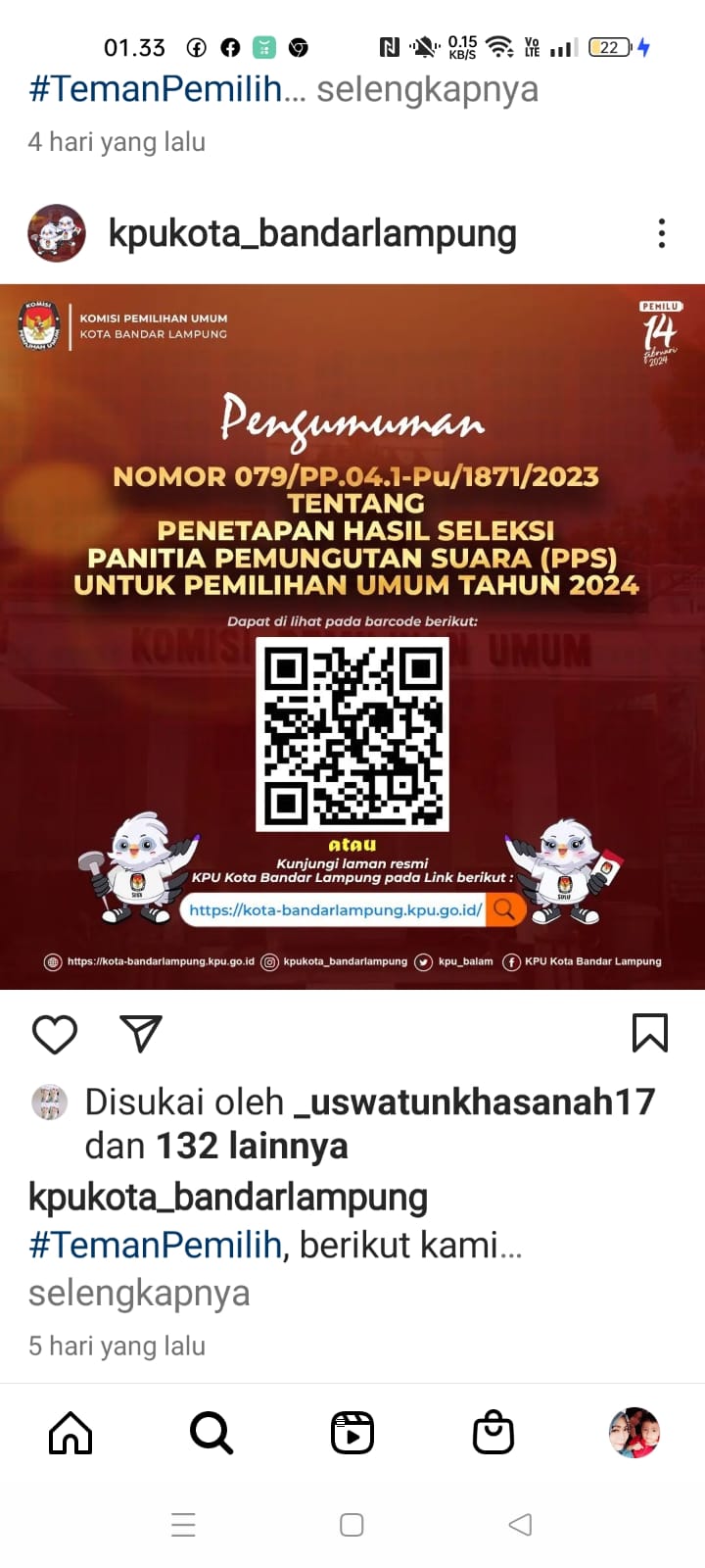 “Kata PPK kami, nama-nama PPS yang lulus sudah pesanan dari KPU, akhirnya saya komen di Instagram @kpukota_bandarlampung dan saya langsung di blokir KPU Balam, rame yang komen, trus langsung akun IG nya ga bisa buat komentar, parah kan, baru yang pelantikan PPS di buka kolom komentarnya,”katanya menyampaikan keluhan nya, Kamis (26/1/22).