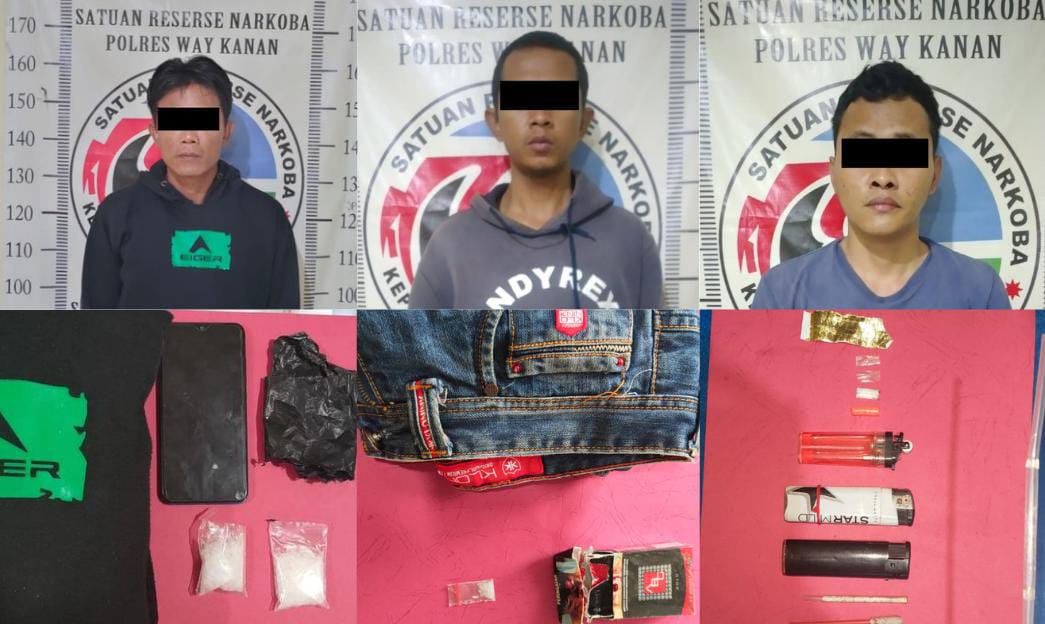 Kapolres Way Kanan AKBP Teddy Rachesna melalui Kasat Narkoba AKP Sigit Barazili menjelaskan dari hasil pengungkapan ini pihaknya mengamankan tiga tersangka di tempat dan waktu berbeda.