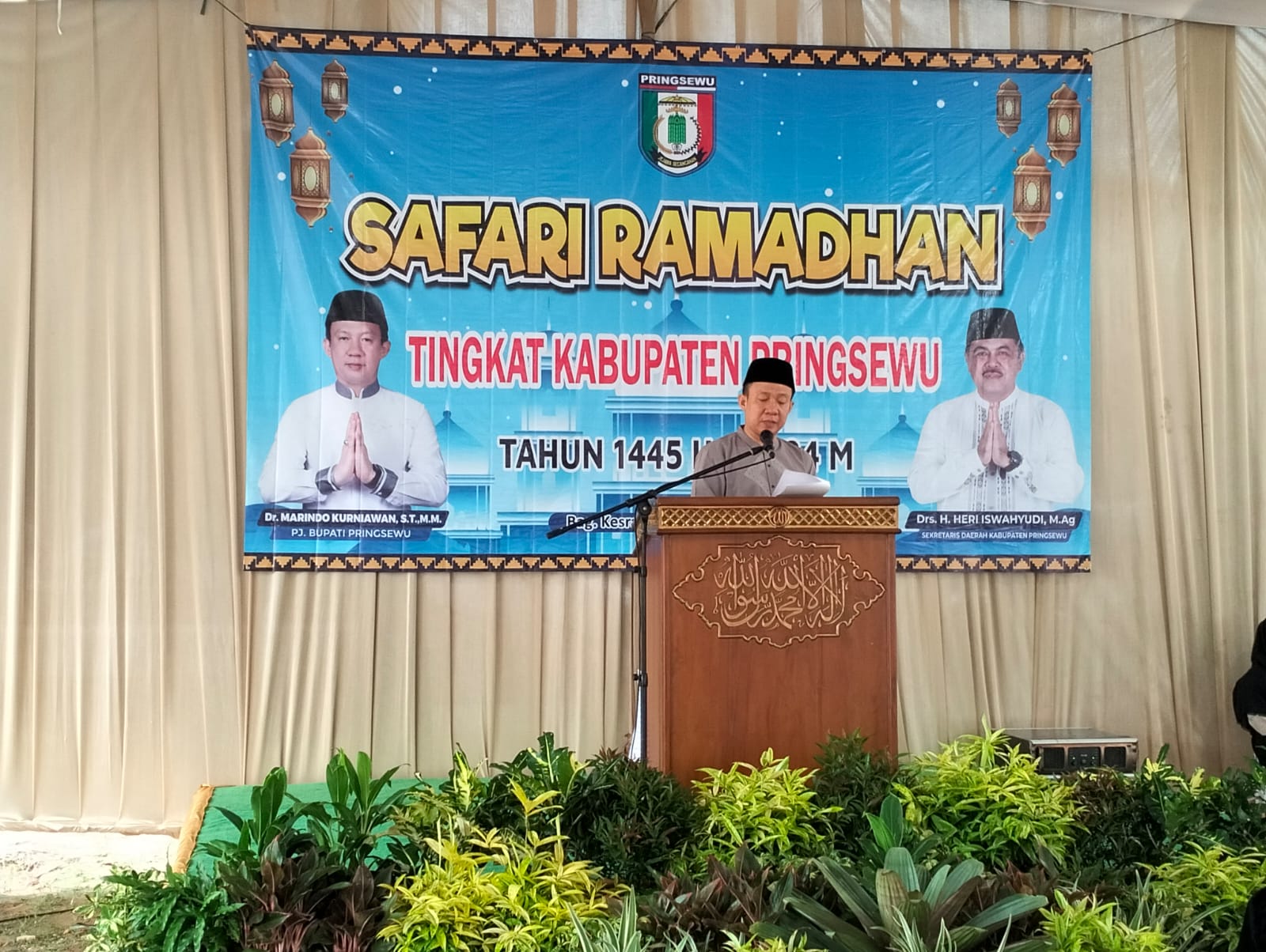 Pada agenda Safari Ramadhan tersebut, PJ Bupati Pringsewu Marindo Kurniawan memberikan bantuan berupa kebutuhan dasar anak terlantar dan sembako di Masjid Al Burhan, Pekon Keputran, Kecamatan Sukoharjo. (Tim)