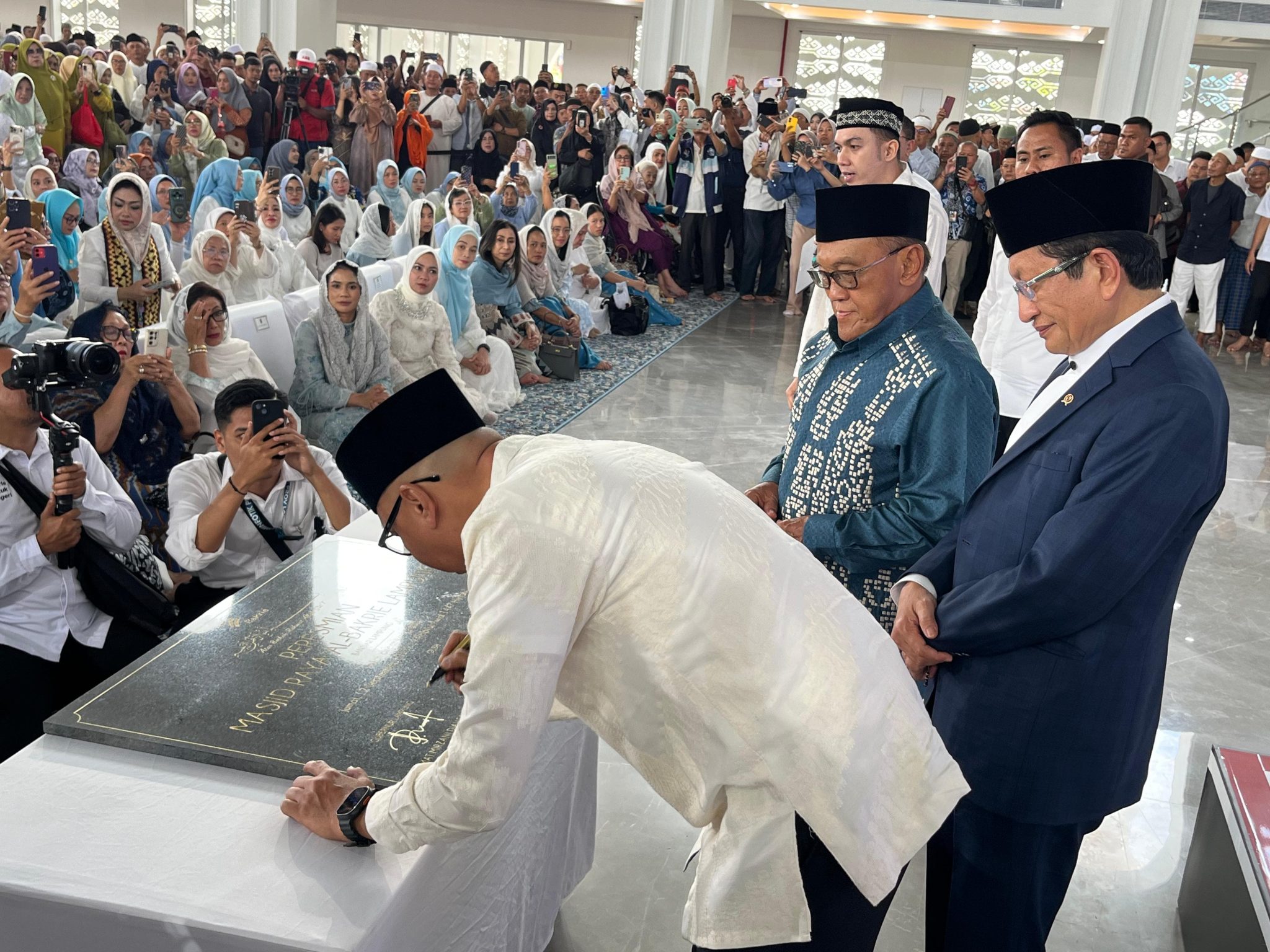 Bandar Lampung – Masjid Raya Al-Bakrie Lampung resmi diresmikan oleh Menteri Agama RI Nasaruddin Umar bersama tokoh nasional Aburizal Bakrie dan Gubernur Lampung Rahmat Mirzani Djausal.Jumat(12/9/2025).