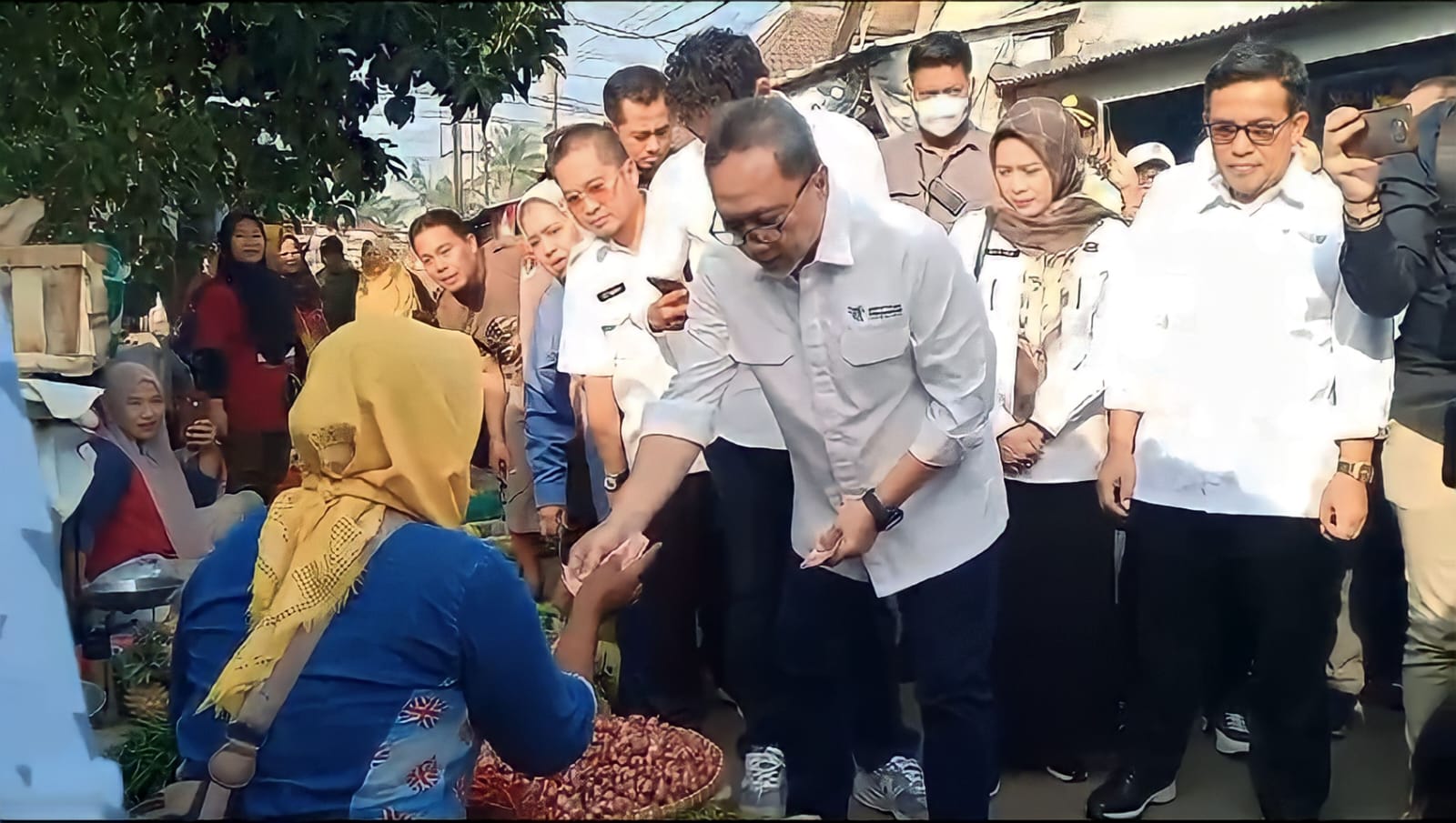 Selama kunjungannya, Mendag Zulkifli Hasan juga berinteraksi dengan warga pasar. Ia mendengarkan keluhan mereka terkait harga sembako yang naik.