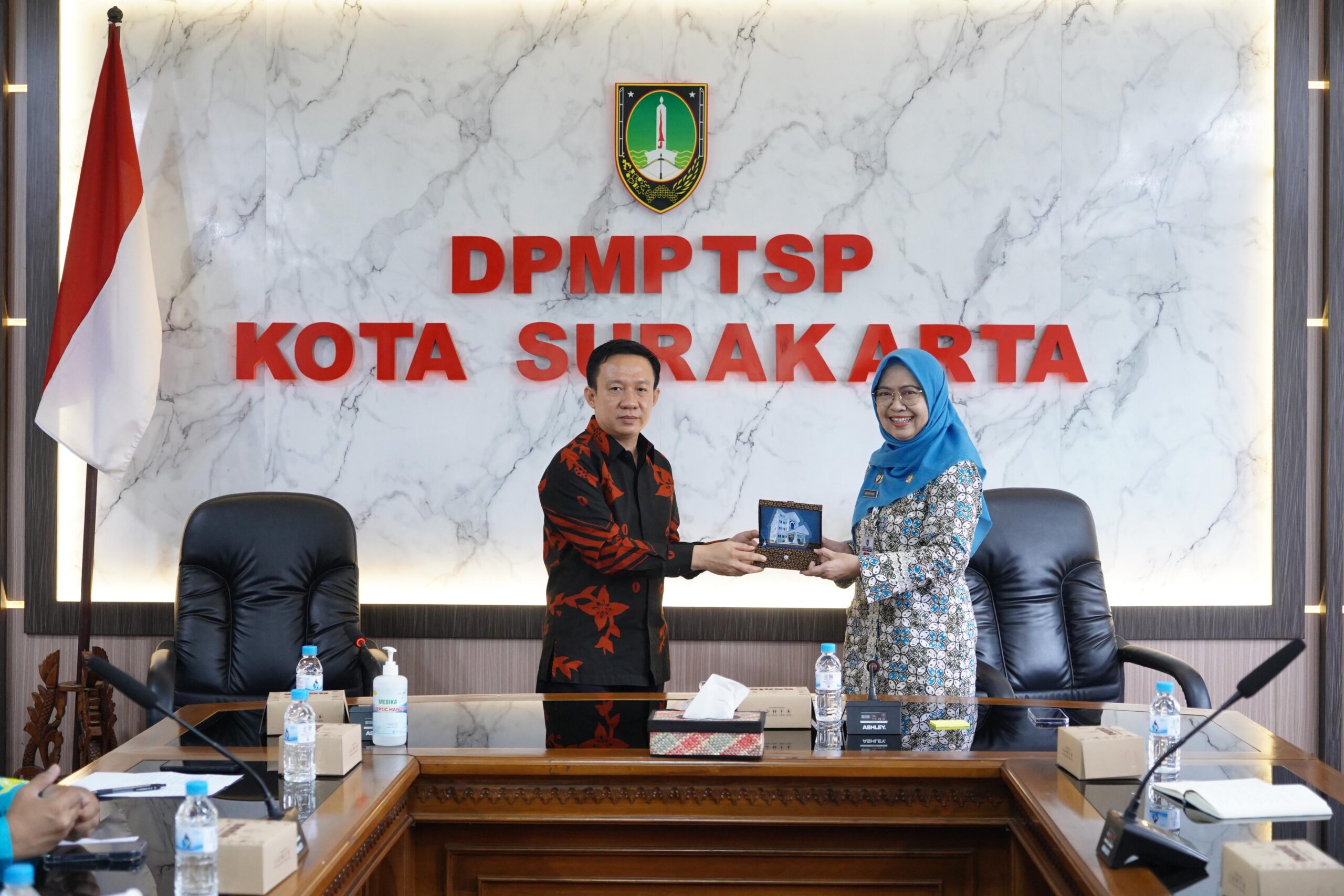 beserta sejumlah Kepala OPD dan staf terkait. Mereka disambut oleh Ka. DPMPTSP Kota Surakarta Dra. Andriyani Sasanti, MM dan jajaran pejabat DPMPTSP Surakarta.