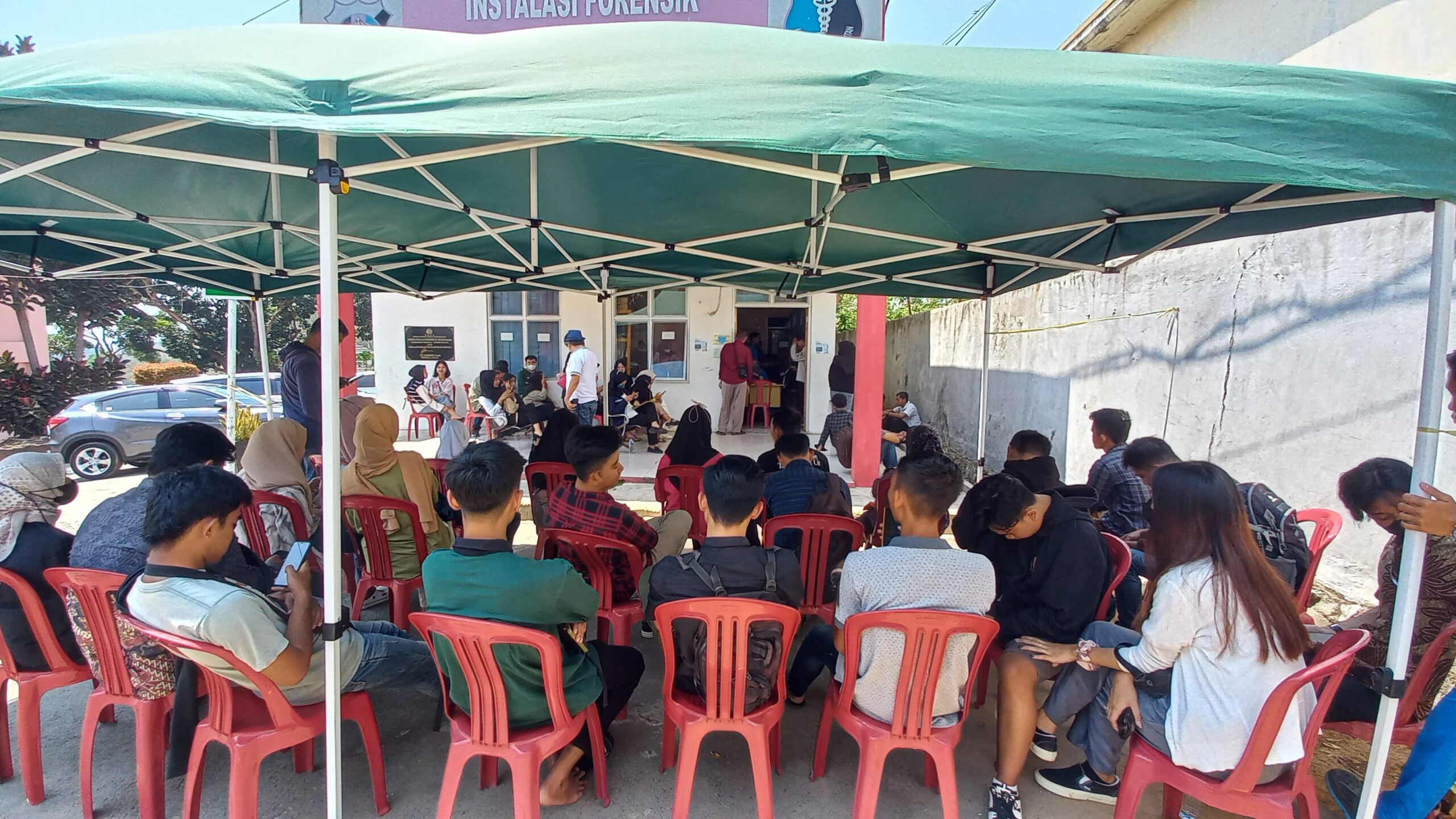Tampak antrean pemohon SKS dan SKBN. Tim yang melayani SKS dan SKBN pun menyediakan tenda di deoan gedung Instalasi Forensik untuk menunggu giliran pemeriksaan kesehatan.