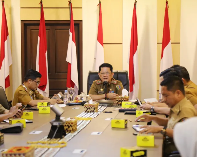 Rapat dipimpin Plt. Asisten Pemerintahan dan Kesra Provinsi Lampung M. Firsada di Ruang Rapat Sakai Sambayan, Kantor Gubernur, Bandar Lampung, Senin (30/9/2024).
