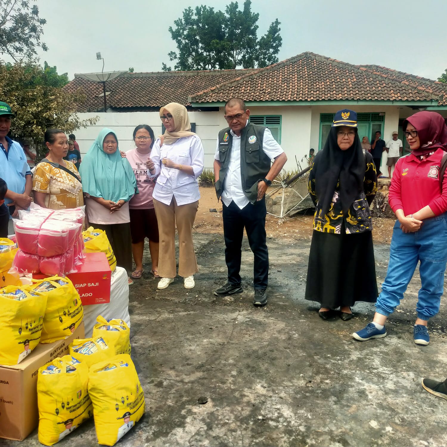 PESAWARAN (KANDIDAT) – Kepala Dinas Sosial Provinsi Lampung Drs. Aswarodi M.Si menyerahkan bantuan dari Gubernur Lampung, untuk korban kebakaran di Desa Penengahan, Kecamatan Gedung Tataan, Kabupaten Pesawaran, Minggu (17/9/2023).