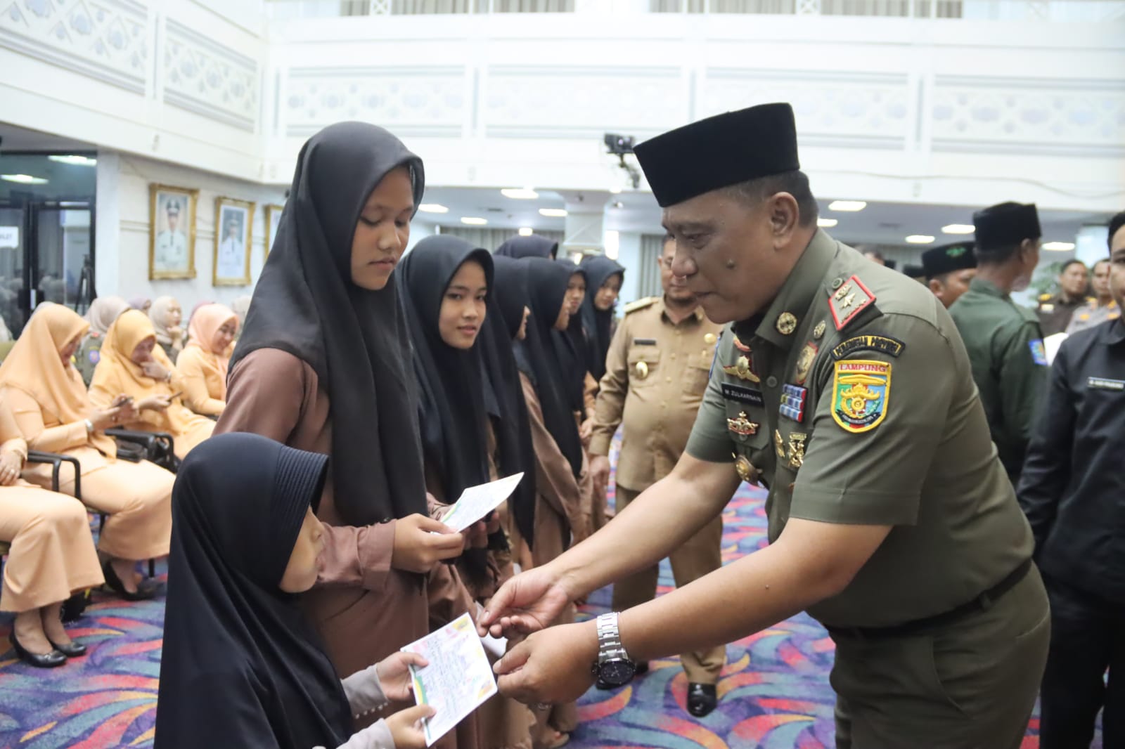 Selain pemberian penghargaan kepada Satlinmas, Gubernur juga memberikan Santunan kepada Anak Yatim dari Panti Asuhan As-Sanura yang juga turut hadir dalam memeriahkan Acara Tasyakuran dan Doa bersama Dalam Rangka Peringatan HUT ke-73 Satuan Polisi Pamong Praja dan ke-61 Satuan Pelindung Masyarakat Tingkat Provinsi Lampung Tahun 2023. (Red)