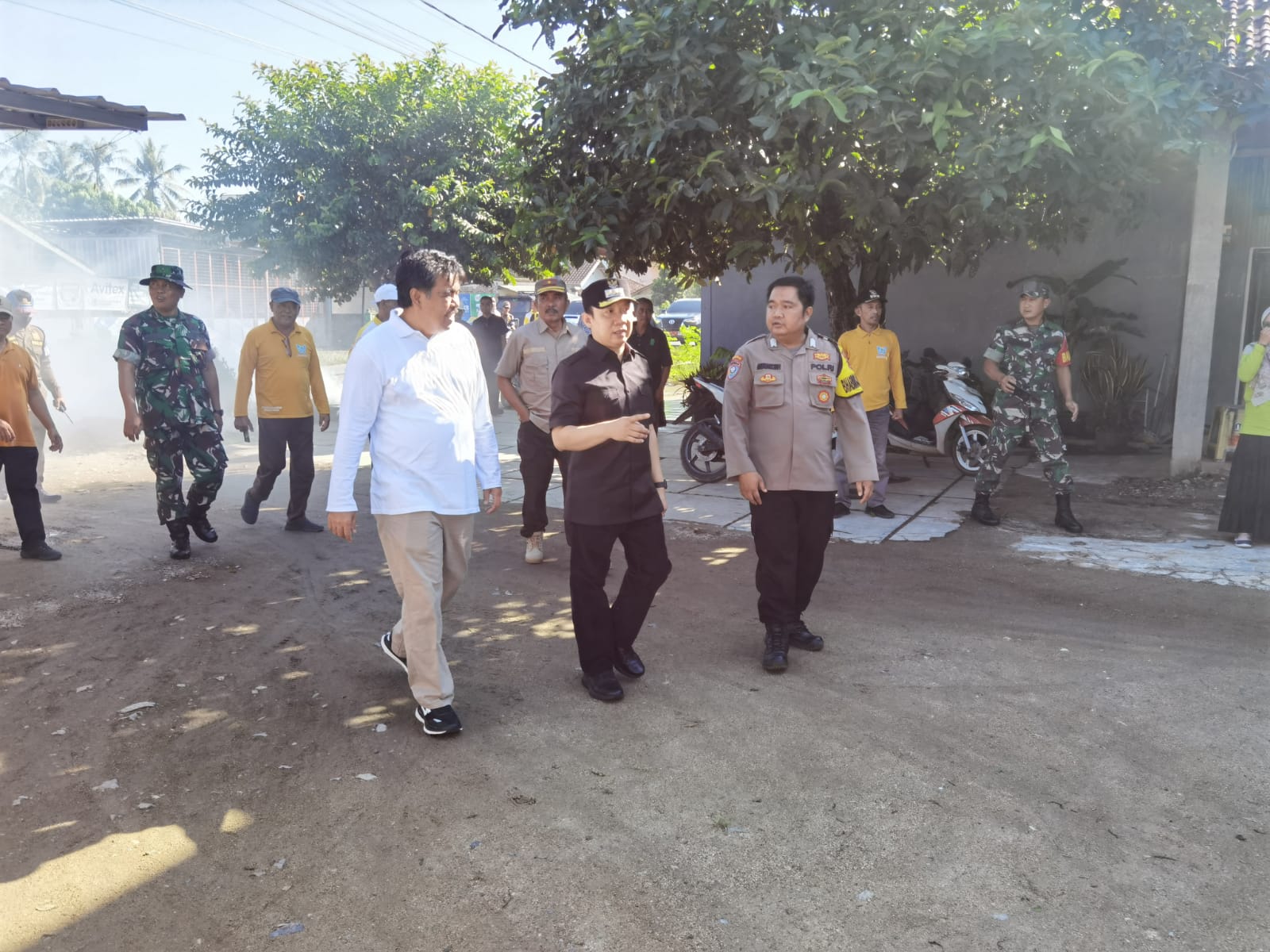 “Kami bersama Pak Sekda dan dinas terkait memantau langsung pelaksanaan gotongroyong, gerakan antisipasi DBD. Jadi, masyarakat bersama aparatur pekon melaksanakan surat edaran untuk membersihkan lingkungan sekitar beserta genangan air yang menjadi faktor potensi penyebaran penyakit DBD,” ujar Marindo.
