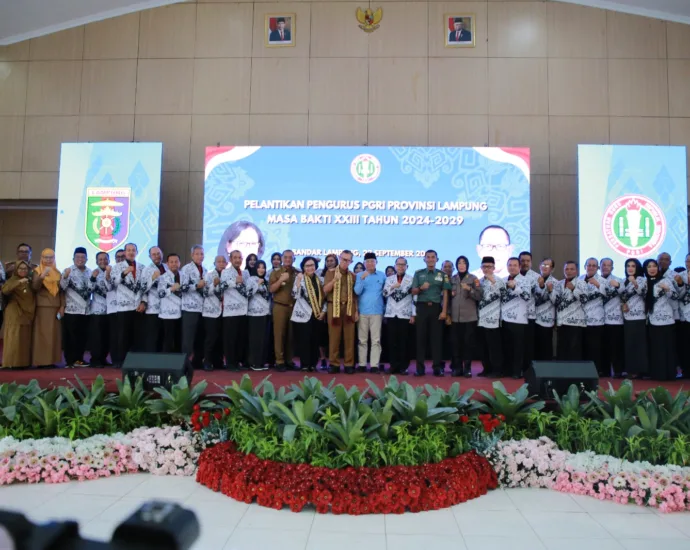 Ajakan Pj. Gubernur Samsudin itu disampaikan Sekretaris Daerah Provinsi Lampung Fahrizal Darminto pada Pelantikan Persatuan Guru Republik Indonesia (PGRI) Provinsi Lampung Masa Bakti ke- 23 Tahun 2024-2029 di Gedung Graha Bakti Pramuka Bandarlampung, Senin (23/9/2024).