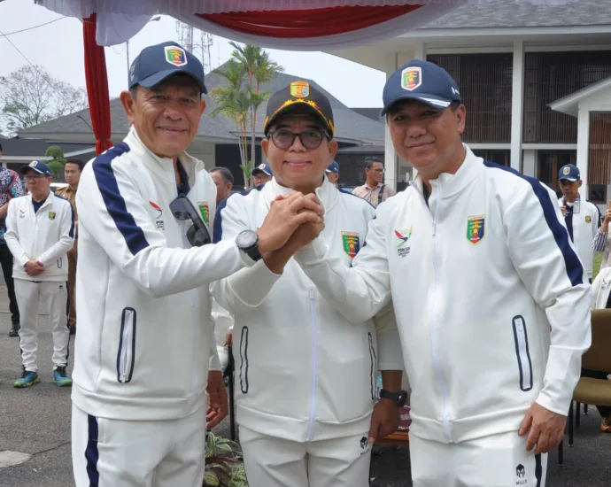 Penjabat (Pj) Gubernur Lampung Samsudin melepas Pawai Atlet Kontingen Lampung yang baru saja berhasil meraih sukses masuk 10 besar pada PON XXI 2024 Aceh – Sumut, dari halaman Mahan Agung, Selasa (24/09/2024).