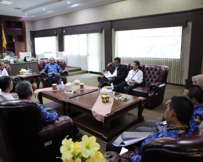 Pj. Gubernur Lampung Samsudin menerima kunjungan unsur pimpinan dan jajaran civitas akademika Politeknik Negeri Lampung (Polinela), di Ruang Kerja Gubernur Lampung, Rabu (17/07/2024).