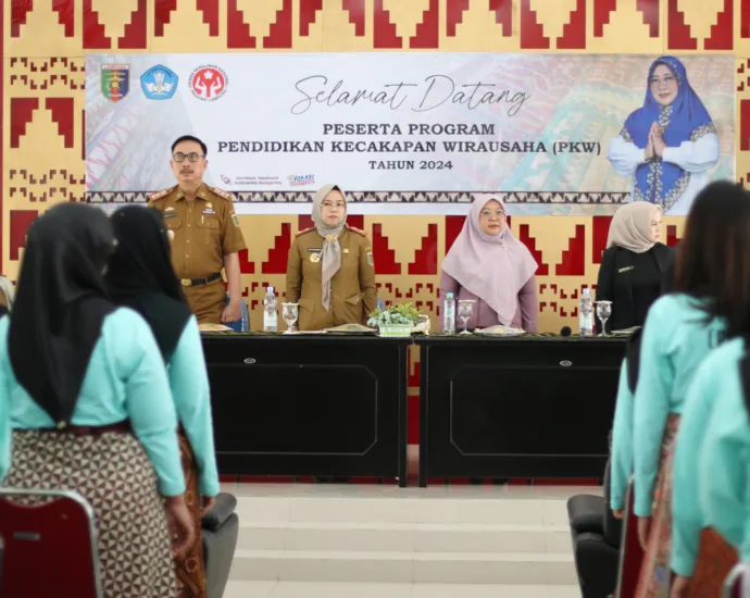 Penjabat Ketua Dekranasda Provinsi Lampung, Maidawati Retnoningsih membuka Program Pendidikan Kecakapan Wirausaha (PKW) bertempat di Gedung Dekranasda Provinsi Lampung, Selasa (24/09/2024).