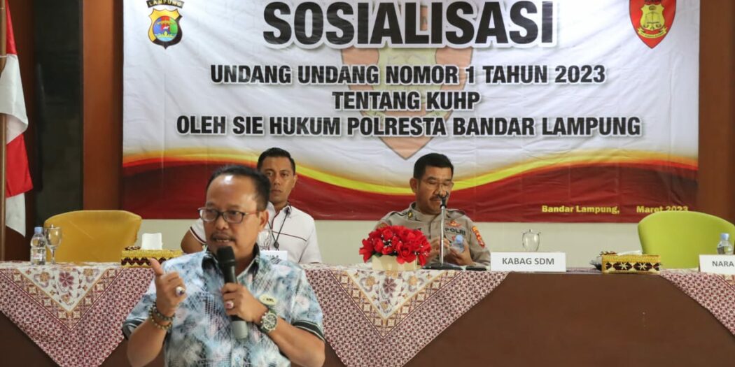 BANDAR LAMPUNG (KANDIDAT) – Polresta Bandar Lampung Polda Lampung menggelar kegiatan sosialisasi Undang-Undang Nomor 1 Tahun 2023, Rabu (15/3/23).