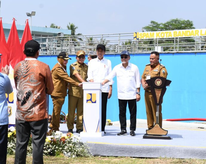 “Dengan mengucap Bismillahirrahmanirrahim, Sistem penyediaan air minum Kota Bandarlampung secara resmi saya nyatakan diresmikan” Sambung Jokowi.(Red)