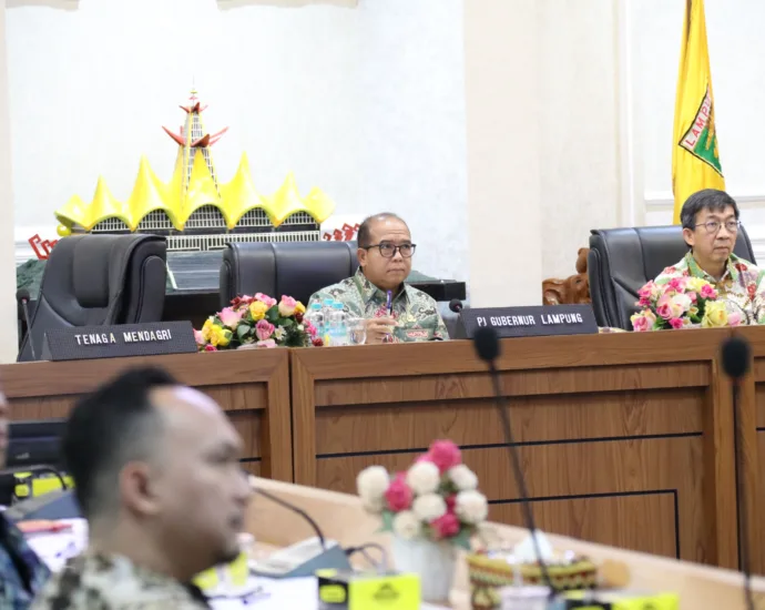 Pj. Gubernur Lampung Samsudin menghadiri rapat Program Strategis Peningkatan Pemahaman Numerasi dengan Metode Pembelajaran Gampang, Asyik dan Menyenangkan ( Gasing) di Ruang Rapat Utama, Kantor Gubernur Lampung, Bandarlampung, Kamis (26/9/2024).
