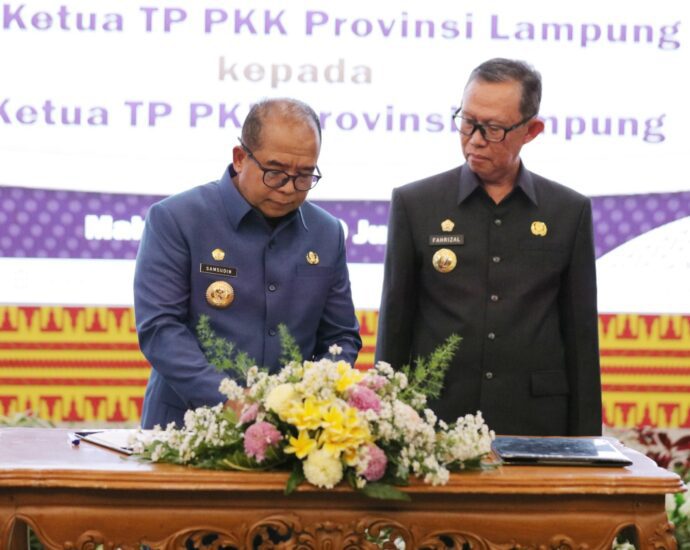 “Yang kedua, yang harus segera diteruskan dan dilaksanakan adalah terkait program yang sudah tersusun dari awal tahun. Semua program-program yang sudah tersusun di awal tahun, yang ada di opd dinas-dinas terkait, itu harus dilaksanakan dengan sebaik-baiknya, semaksimal mungkin, seefisien mungkin agar masyarakat Lampung merasakan manfaat dari program itu,” ujar Pj. Gubernur Samsudin.