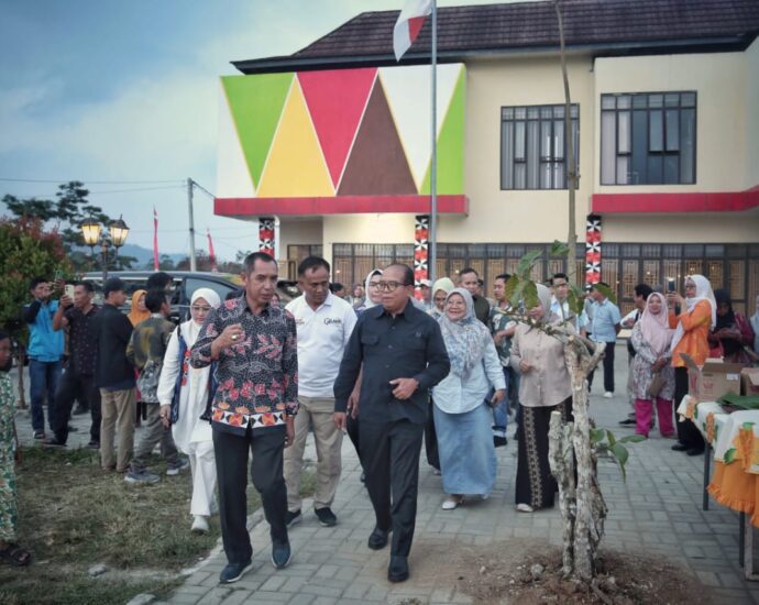 Pj. Gubernur Lampung Samsudin bersama Pj. Ketua TP-PKK Provinsi Lampung Ibu Maidawati Retnoningsih mengunjungi Sekolah Kopi, di Sumber Jaya, Lampung Barat, Jum’at (30/8/2024).
