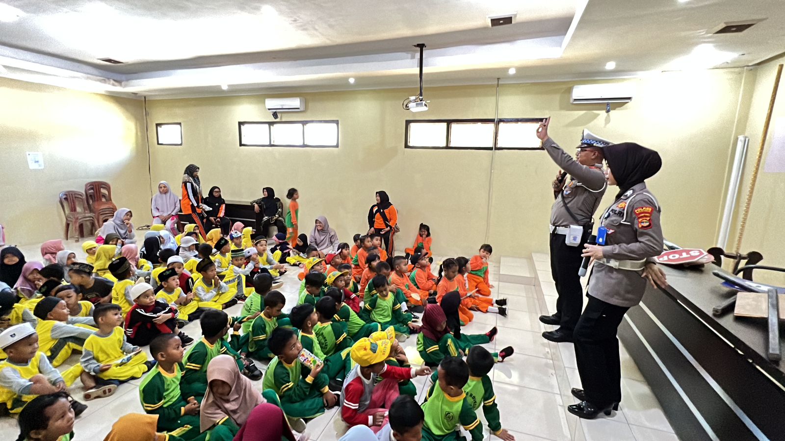 Kegiatan dipimpin langsung oleh Kasatlantas Polres Way Kanan AKP Elvis Yani bersama personel Satlantas Polres Way Kanan yang dihadiri sebanyak 117 murid Taman Kanak-Kanak (TK) dan didampingi staf guru.