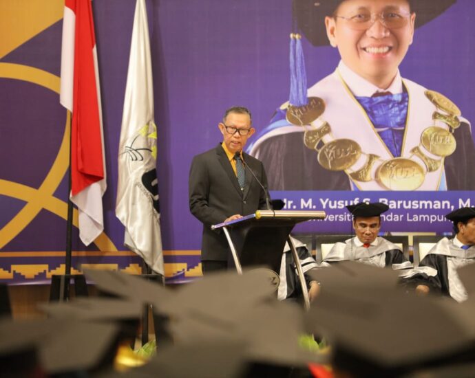 Sekretaris Daerah Provinsi (Sekdaprov) Lampung Fahrizal Darminto, mewakili Gubernur Provinsi Lampung Arinal Djunaidi, menghadiri Rapat Senat Luar Biasa, Yudisium dan Wisuda Program Sarjana/Pascasarjana Universitas Bandar Lampung (UBL), di Gedung Mahligai Agung, UBL Bandarlampung, Rabu (29/05/2024).