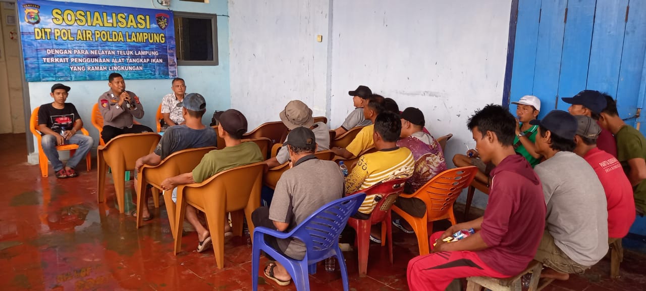 Dit Polairud Polda Lampung menggelar silahturahmi bersama Paguyuban Nelayan Jaring Tarik, yang Berkantor di Lempasing, yakni dalam rangka sosialisasi terkait bahaya dari penggunaan bahan peledak jenis bom ikan yang ditujukan kepada para nelayan yang hendak menangkap ikan.