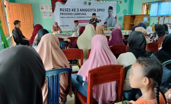 Pringsewu — Anggota DPRD Provinsi Lampung, Syukron Muchtar, menggelar kegiatan reses atau serap aspirasi masyarakat di SD Muhammadiyah Pekon Waringin Sari Barat, Kecamatan Sukoharjo, Kabupaten Pringsewu. Senin (28/07/2025).