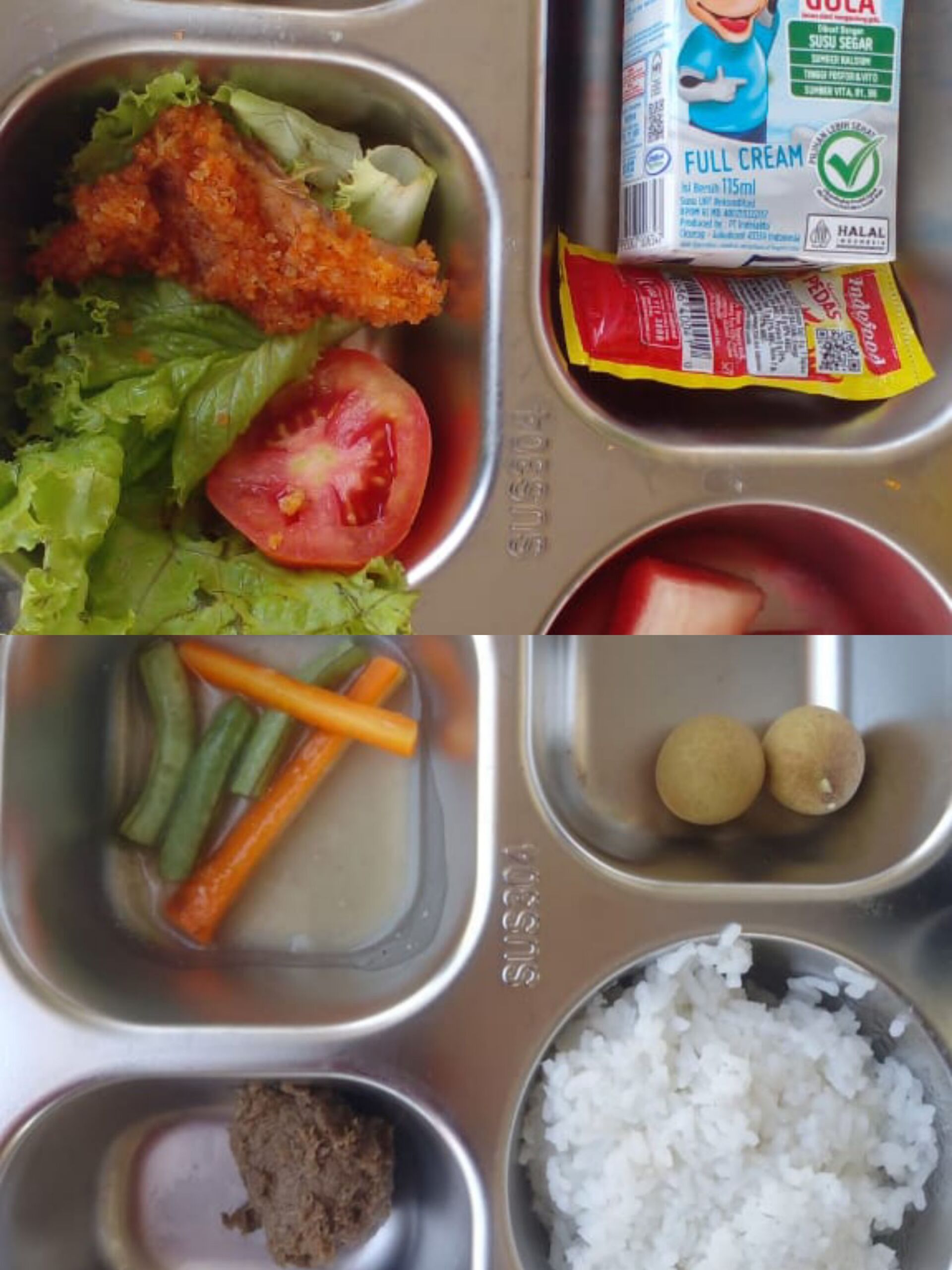 Ahli Gizi juga menjelaskan sengaja tidak ada susu dalam menu tersebut, karena sudah ada daging sapi dan takut terjadi kolesterol pada anak-anak apabila ada disediakan susu.